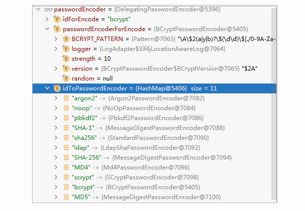 我们可以换一个视角来看下这个DelegatingPasswordEncoder长什么样:
