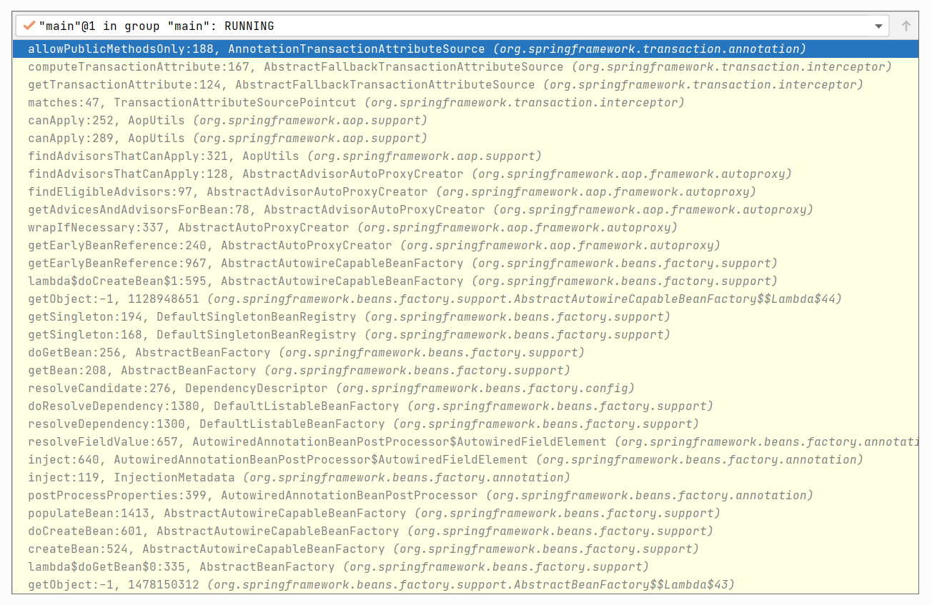 通过 debug,我们一步步寻找到了问题的根源,得到了以下调用栈。我们通过 Spring 的源码来解析一下完整的过程。