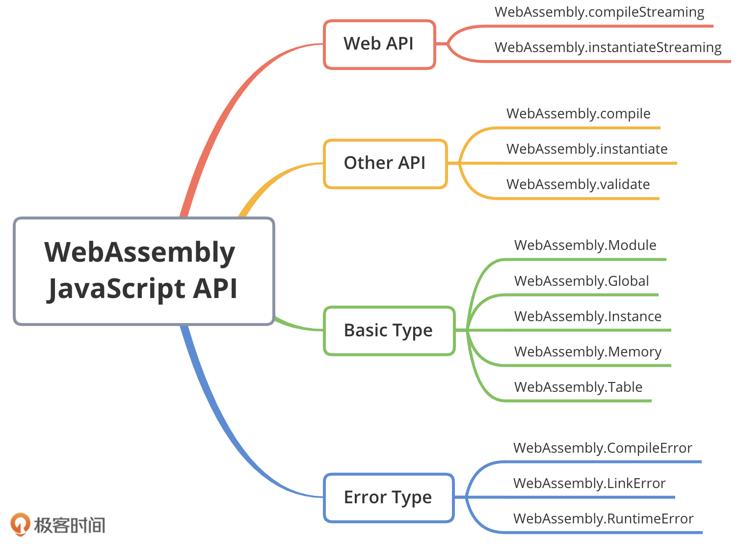 最后,我绘制一个 Wasm JavaScript API 脑图,可以供你参考以及回顾本节课的内容。