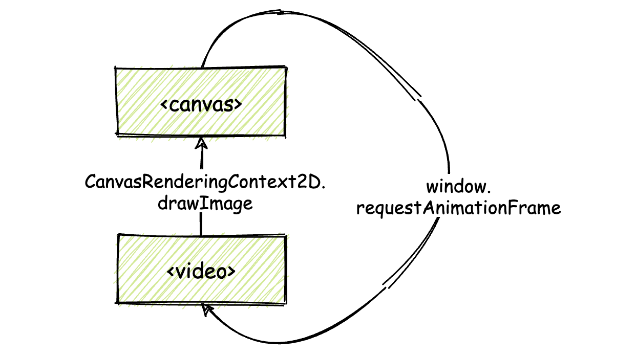 为了能够让绘制到 <canvas> 上的画面可以随着视频的播放来实时更新,这里我们将使用名为 “window.requestAnimationFrame” 的 Web API, 来实时更新绘制在 <canvas> 上的画面内容(如果你对这个 API 不太熟悉,可以点击这里回到“基础课”进行复习)。