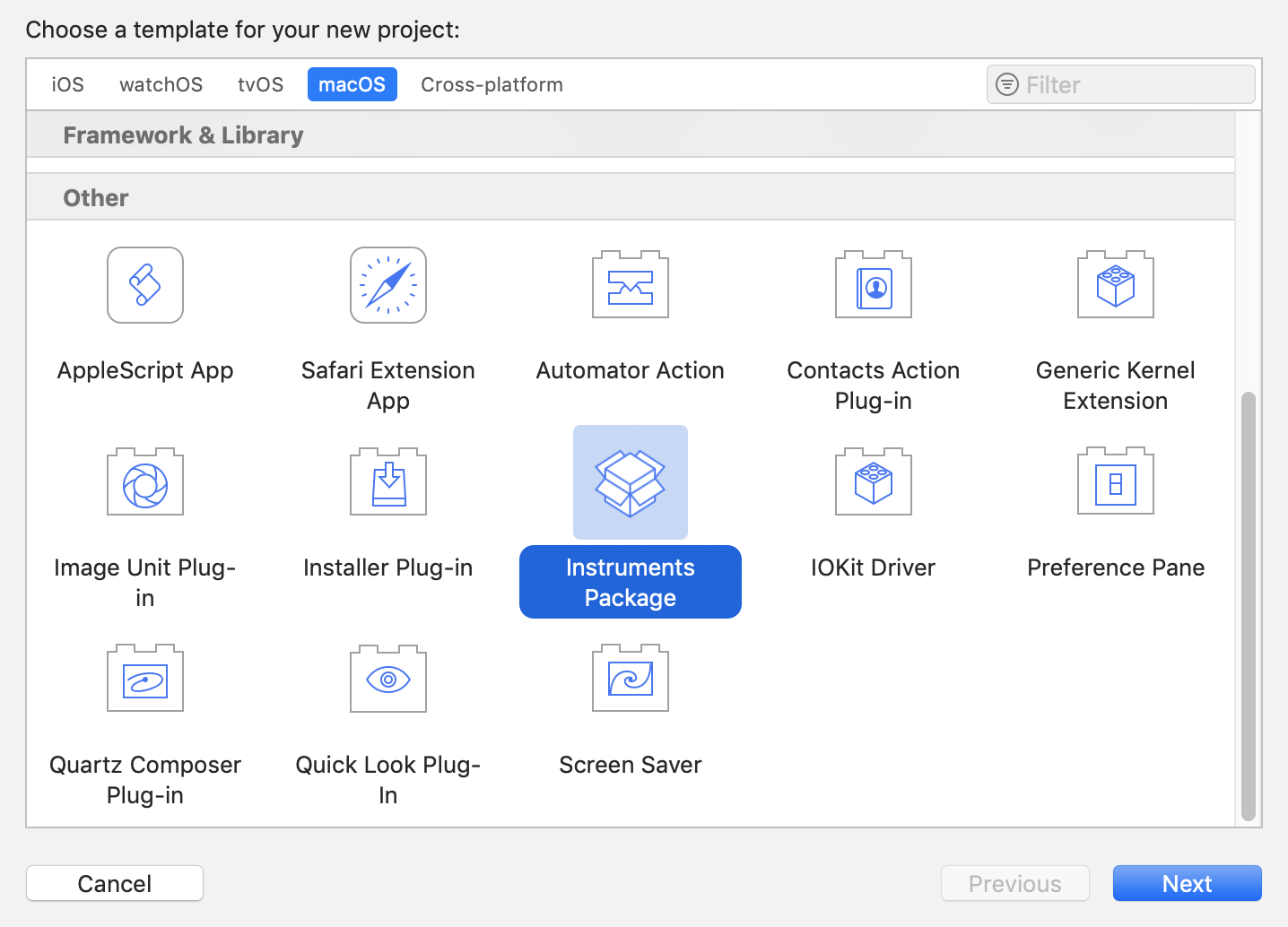 选择 Instruments Package,点击后即可开始自定义工具的开发了。如下图所示。