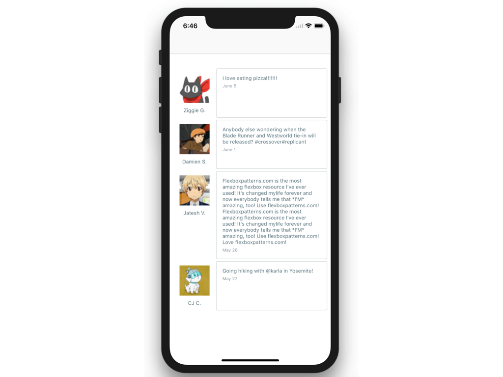 虽然 Masonry 和 SnapKit 能够简化布局写法,但和前端的布局思路相比,Auto Layout 的布局思路还处在处理两个视图之间关系的初级阶段,而前端的 Flexbox 已经进化到处理一组堆栈视图关系的地步了。