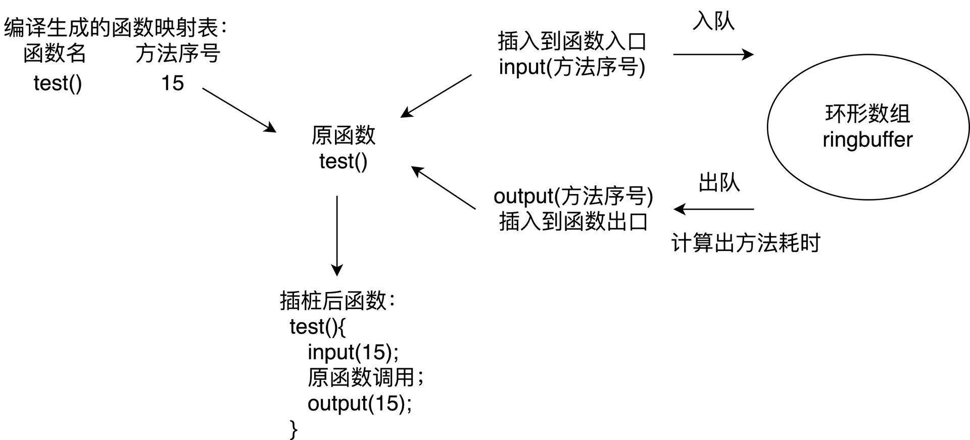 避免方法数暴增。在函数的入口和出口应该插入相同的函数,在编译时提前给代码中每个方法分配一个独立的ID作为参数。