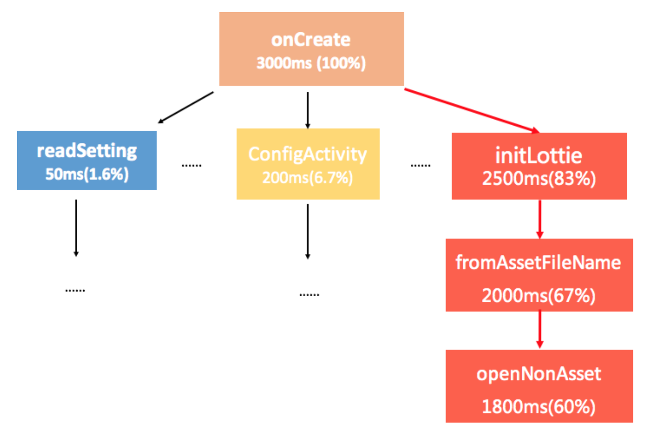 从图上看,Activity的onCreate函数耗时达到3秒,而其中Lottie动画中openNonAsset函数耗时竟然将近2秒。尽管是读取一个30KB的资源文件,但是它的耗时真的会有那么长吗?