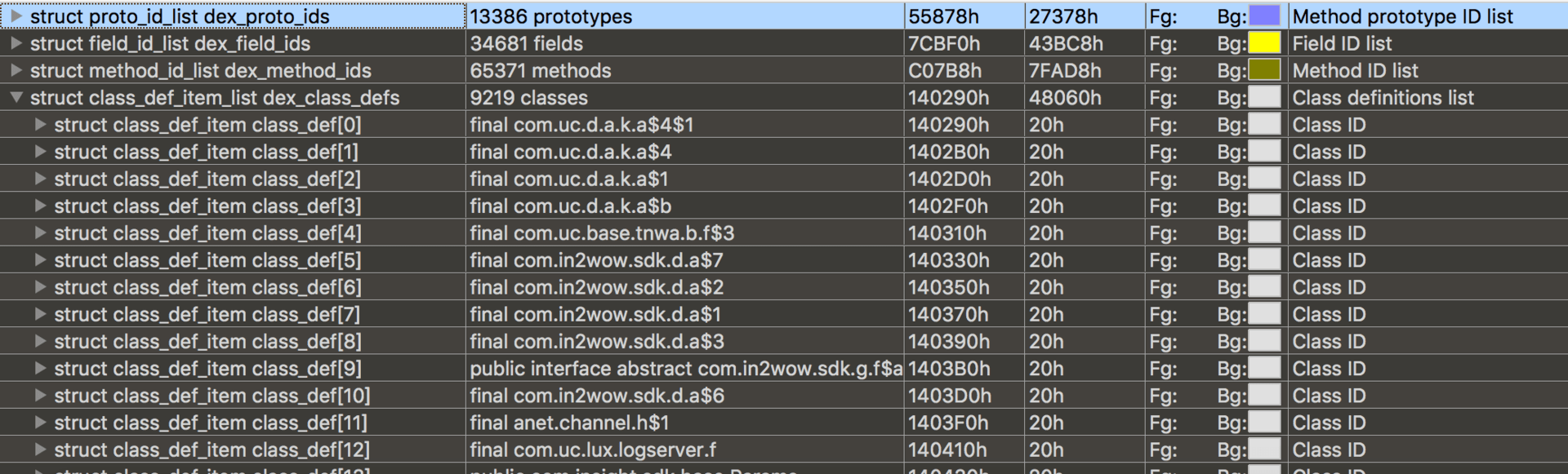 然后通过ReDex的Interdex调整类在Dex中的排列顺序,最后可以利用010 Editor查看修改后的效果。
