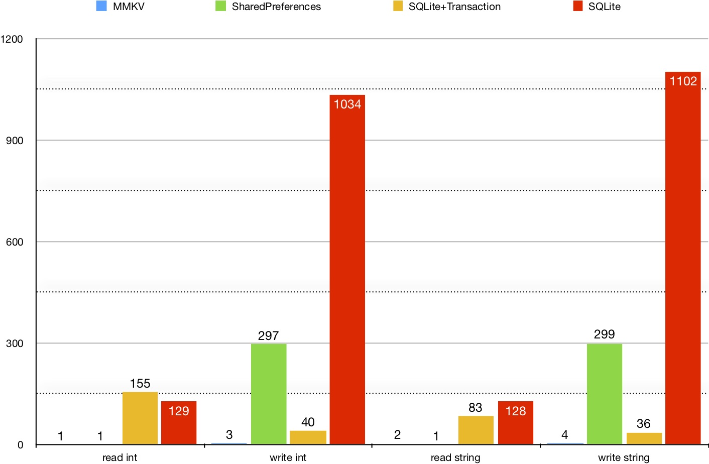 下面是MMKV给出的性能测试报告,你可以看到跟系统的SharedPreferences相比,主要差距在于写的速度。