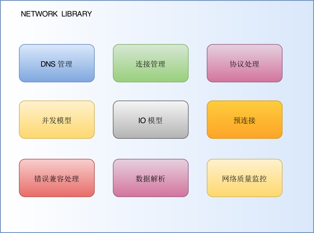 全局网络控制。在网络库内部我们可以做统一的网络调度、流量监控以及容灾管理等工作。