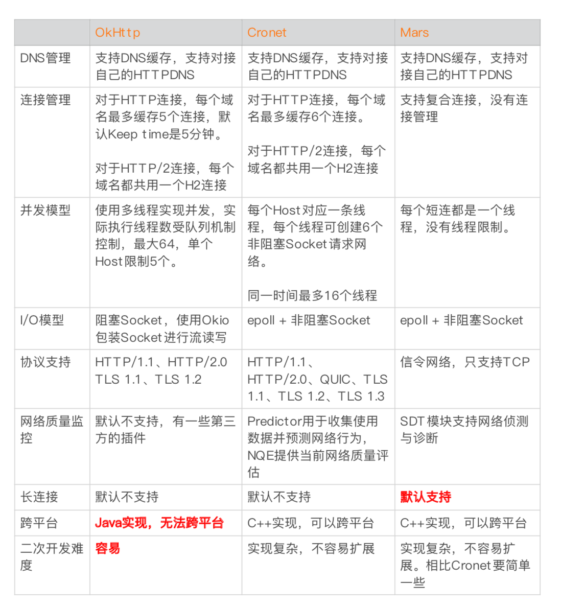 那网络库实现到底哪家强?接下来我们一起来对比OkHttp、Chromium的Cronet以及微信Mars这三个网络库的内部实现。