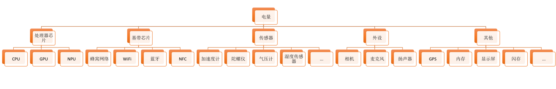 但是“王者”“吃鸡”等应用程序不会直接去消耗电池,而是通过使用硬件模块消耗相应的电能,下图是手机中一些比较耗电的硬件模块。