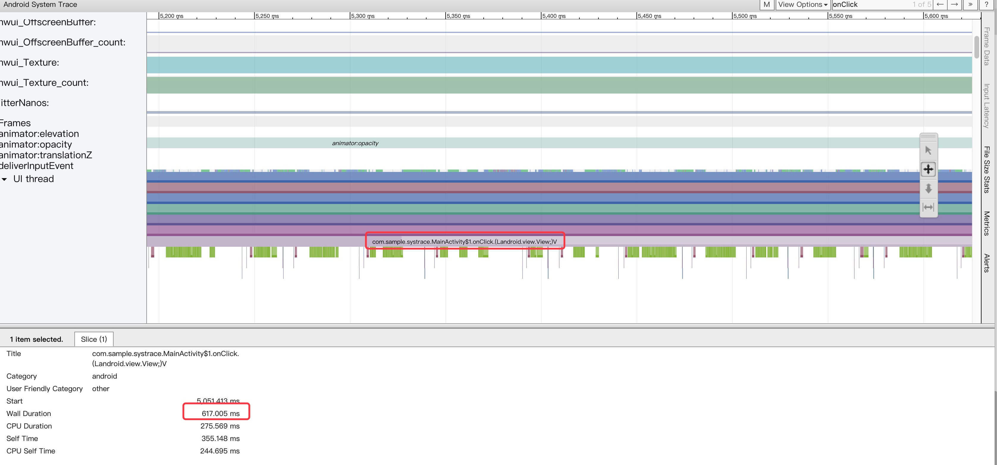 这个Sample是学习如何给代码加入Trace Tag,大家可以将这个代码运用到自己的项目中,然后利用systrace查看结果。这就是所谓的systrace + 函数插桩。