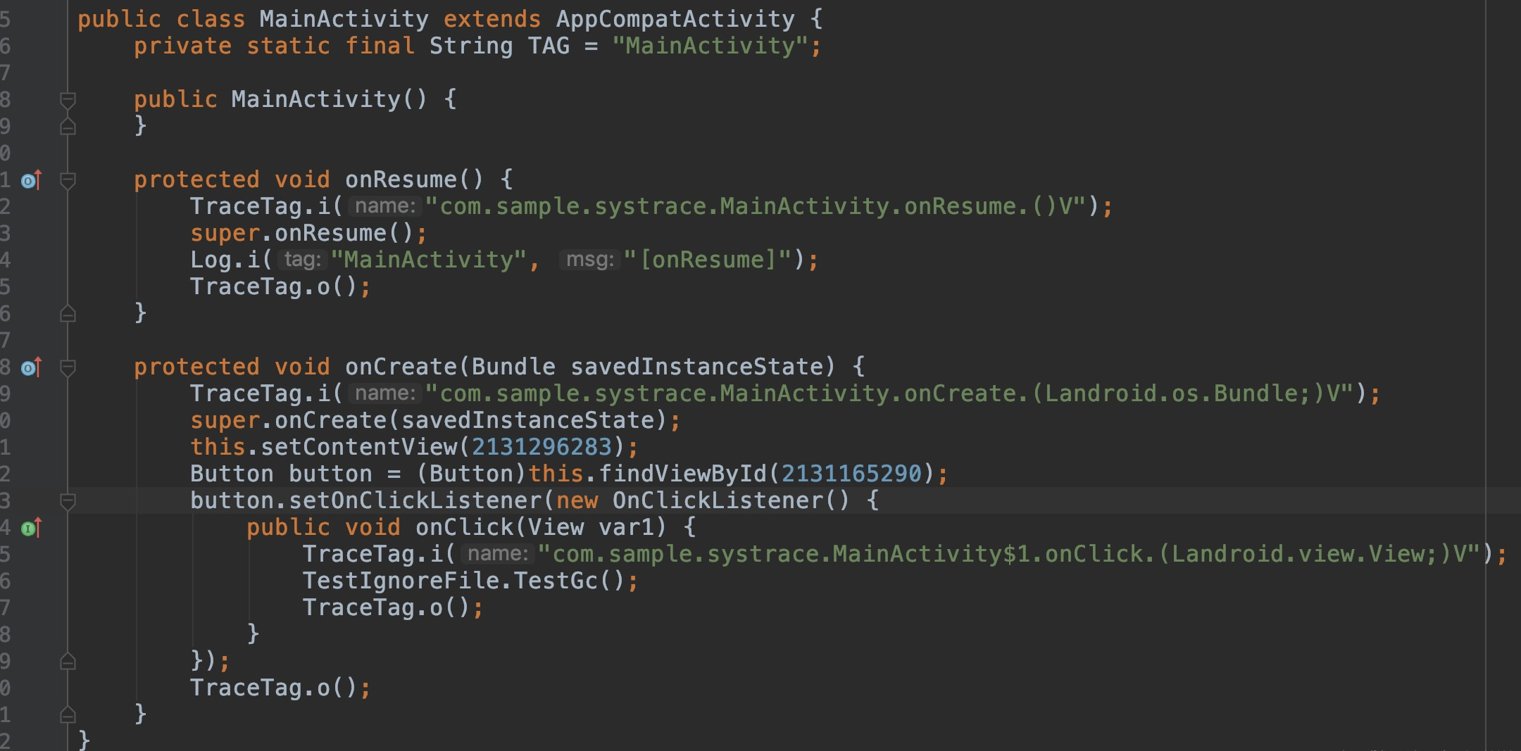 可以看到在方法执行前后插入了TraceTag,这样的话beginSection方法和endSection方法之间的代码就会被追踪。