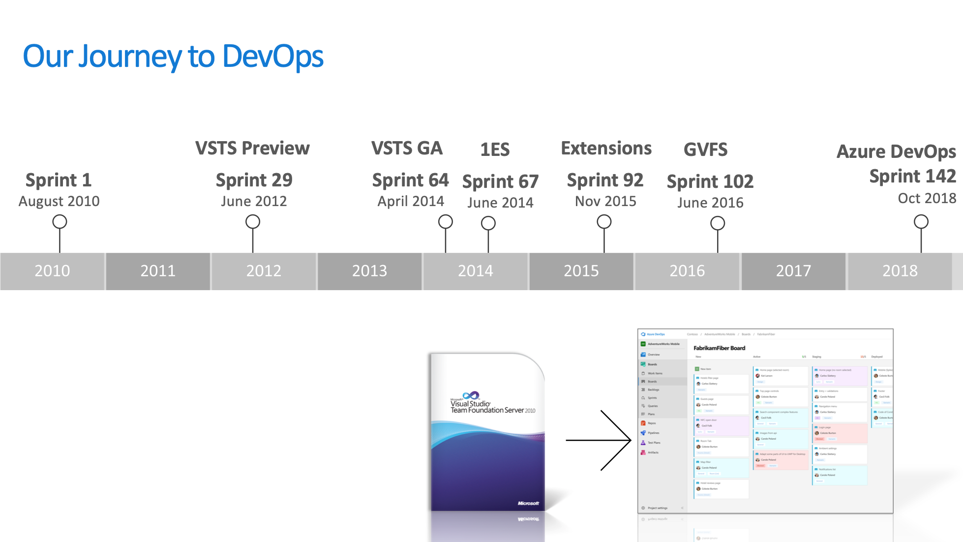 在接下来的几年里面,1ES团队推动VSTS(也就是现在的Azure DevOps)成为了微软内部的工具平台标准,平台的用户也从最开始的几千个人增长到了后来的10万多人。