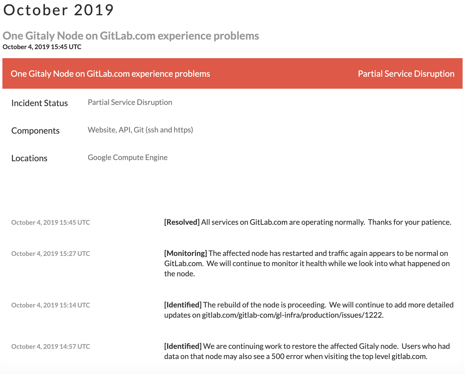 从此以后,GitLab的开放越发“变本加厉”。现在你可以在任何时间去查看服务的实时状态,包括每一次过往的事故分析。同时,名叫“GitLab状态”的Twitter账号实时更新当前的问题,目标就是在任何用户发现问题之前,尽量主动地将问题暴露出来,至今已经发布了将近6000条问题。