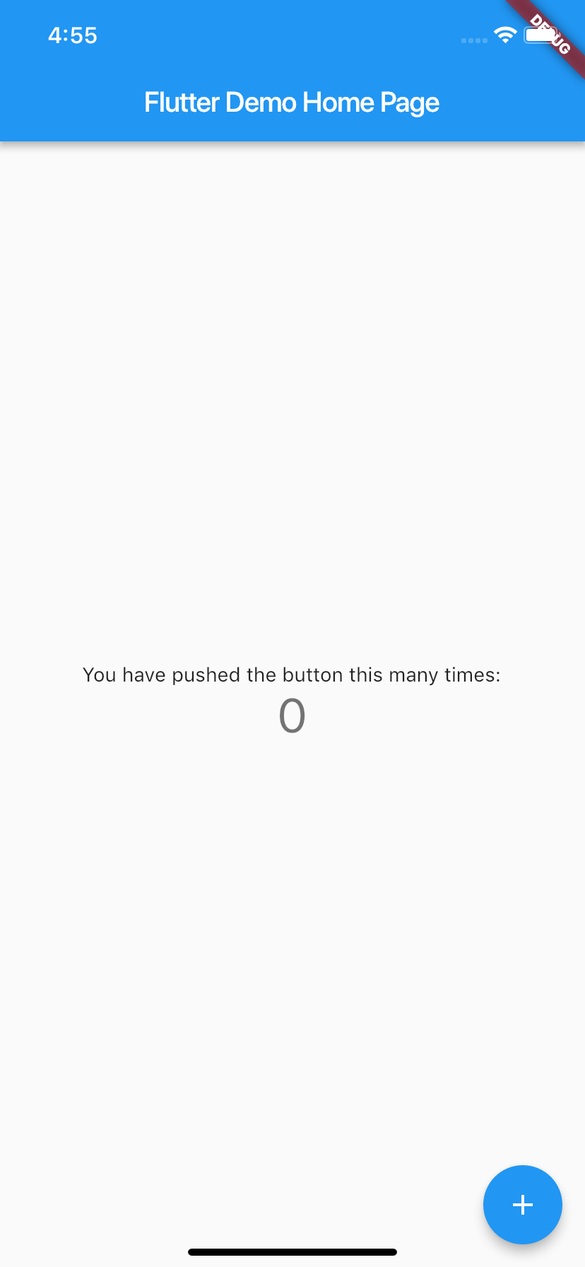 首先,我们打开Android Studio,创建一个Flutter工程应用flutter_app。Flutter会根据自带的应用模板,自动生成一个简单的计数器示例应用Demo。我们先运行此示例,效果如下:
