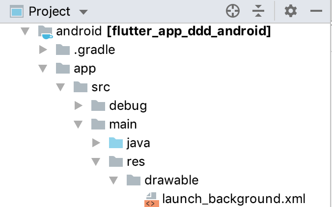 对于Android平台,启动图位于根目录android/app/src/main/res/drawable下,是一个名为launch_background的XML界面描述文件。