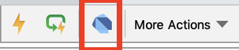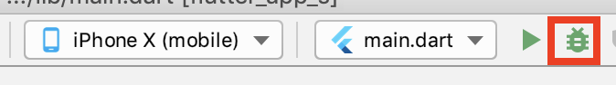 接下来则是调试应用了。和之前通过点击run按钮的运行方式不同,这一次我们需要点击工具栏上的虫子图标,以调试模式启动App,如下图所示: