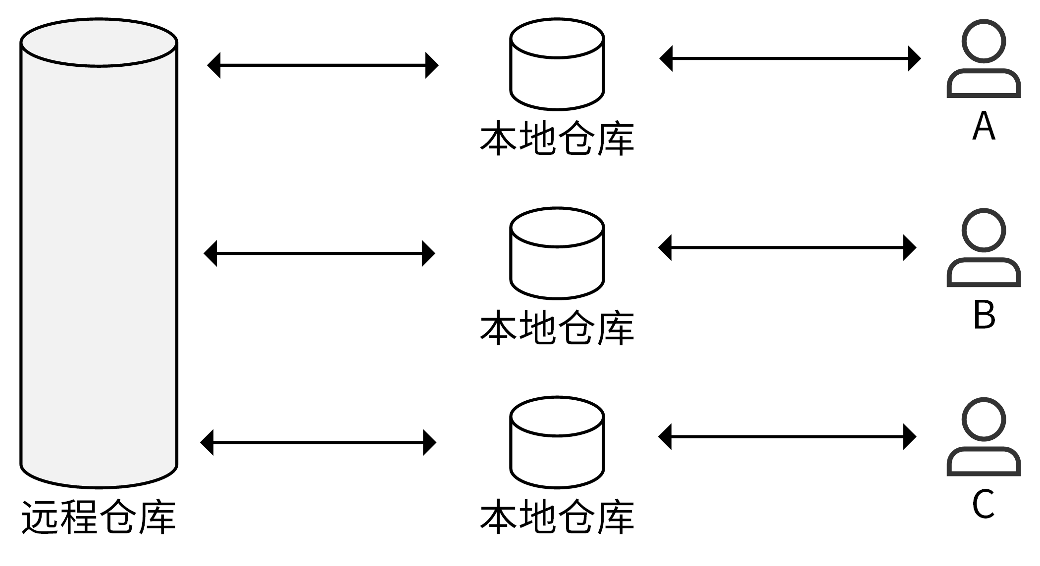 我们先来看看集中式工作流,它是最简单的一种开发方式。集中式工作流的工作模式如下图所示: