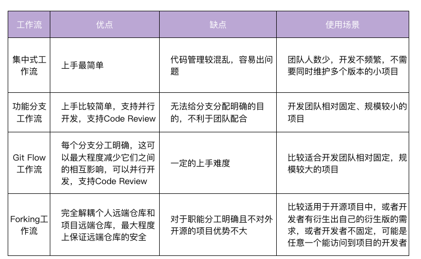 集中式工作流是最早的Git工作流,功能分支工作流以集中式工作流为基础,Git Flow 工作流又是以功能分支工作流为基础,Forking工作流在Git Flow 工作流基础上,解耦了个人远端仓库和项目远端仓库。