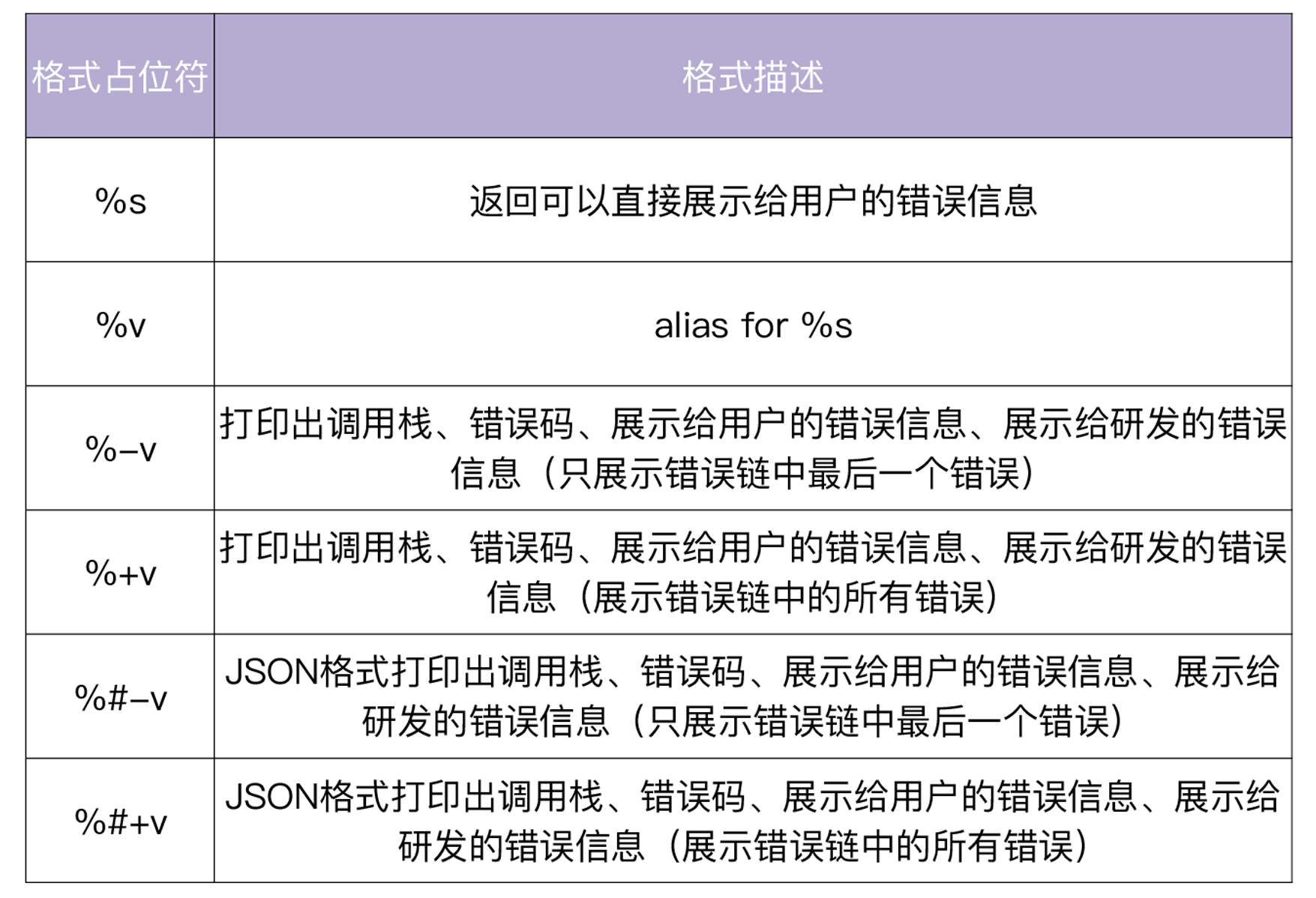 其次,能够支持不同的打印格式。例如%+v、%v、%s等格式,可以根据需要打印不同丰富度的错误信息。