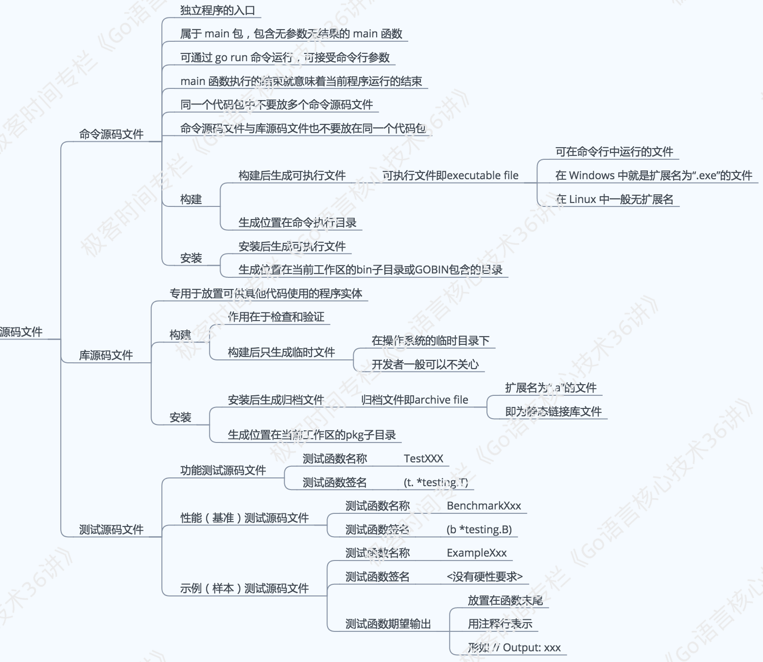 这里的源码文件又分为三种,即:命令源码文件、库源码文件和测试源码文件,它们都有着不同的用途和编写规则。( 我在[“预习篇”的基础知识图]介绍过这三种文件的基本情况。)