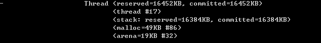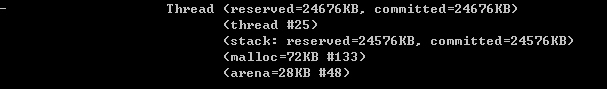 得到的统计信息如下,线程数目从25降到了17,消耗的内存也下降了大概1/3。-