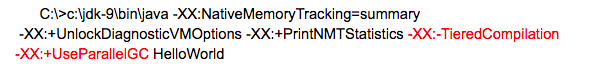 -XX:+UnlockDiagnosticVMOptions -XX:+PrintNMTStatistics