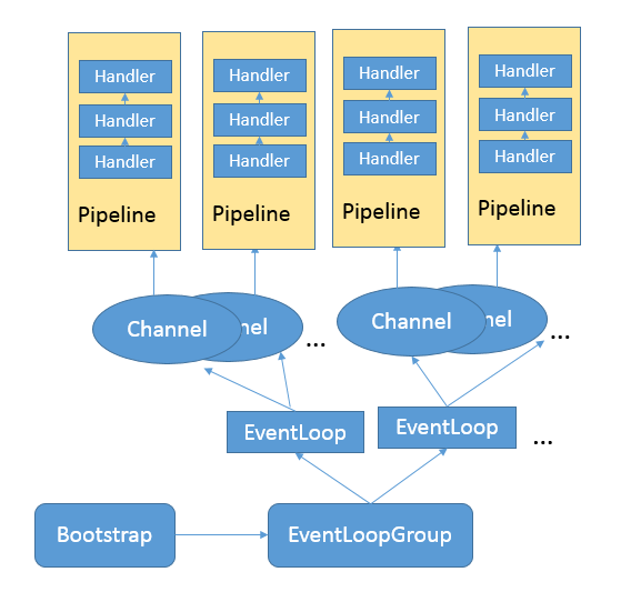 EventLoop,这是Netty处理事件的核心机制。例子中使用了EventLoopGroup。我们在NIO中通常要做的几件事情,如注册感兴趣的事件、调度相应的Handler等,都是EventLoop负责。