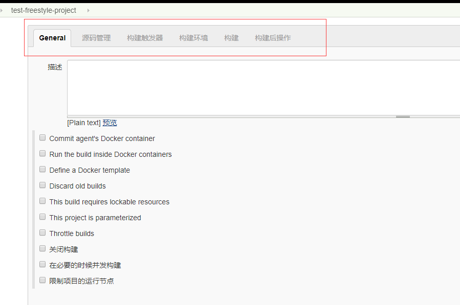 general:用于配置任务构建时的全局配置,比如上面列出的选项框:
