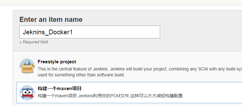 首先在Jenkins界面创建一个maven类型的job,如下所示:
