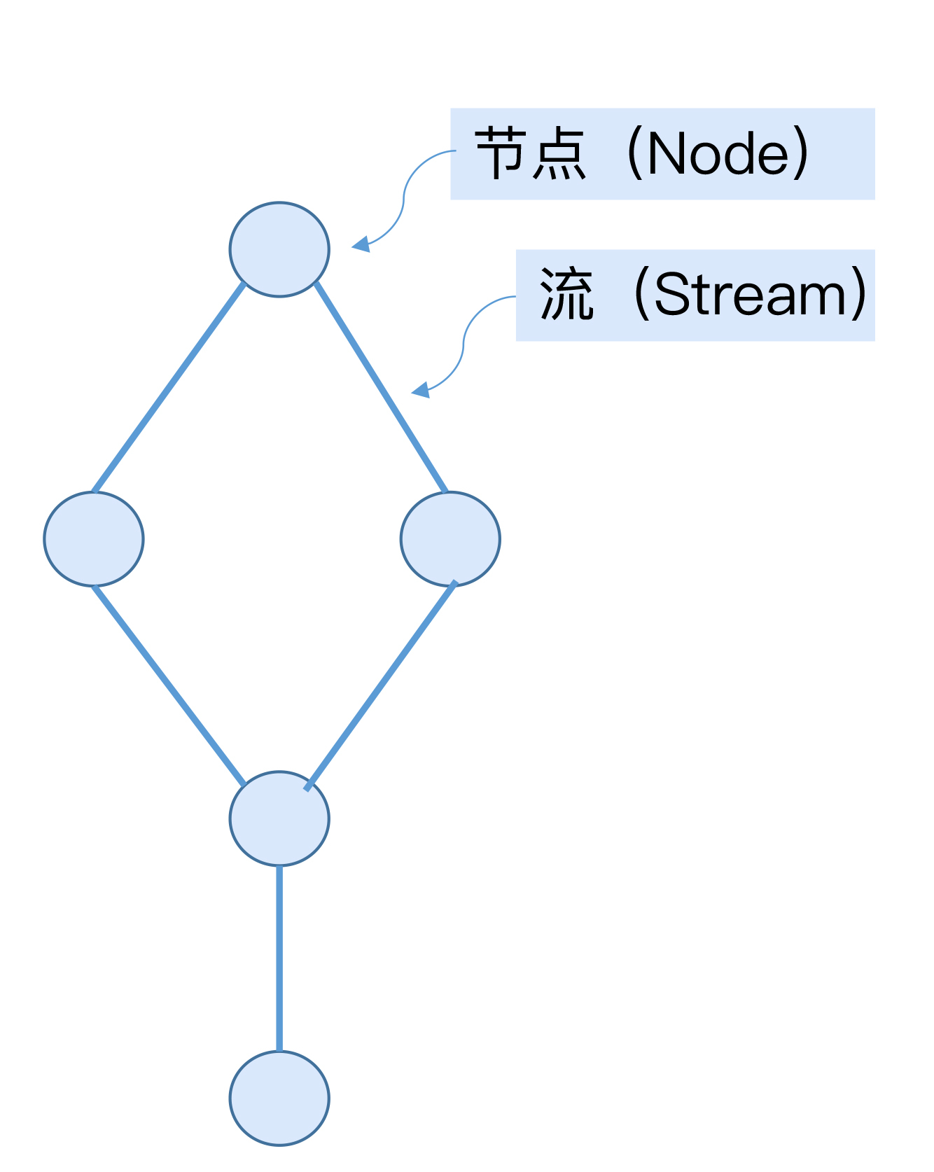 一个拓扑结构本质上是一个有向无环图(DAG),它由多个处理节点(Node)和连接节点的多条边组成,如下图所示: