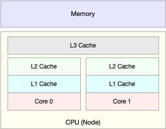 就像上面这张图显示的,CPU缓存的速度介于CPU和内存之间,缓存的是热点的内存数据。根据不断增长的热点数据,这些缓存按照大小不同分为 L1、L2、L3 等三级缓存,其中 L1 和 L2 常用在单核中, L3 则用在多核中。