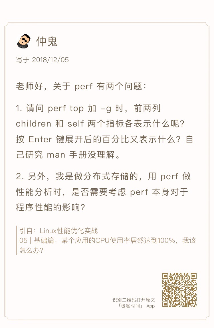 今天是我们第二期答疑,这期答疑的主题是我们多次用到的perf工具,内容主要包括前面案例中, perf 使用方法的各种疑问。