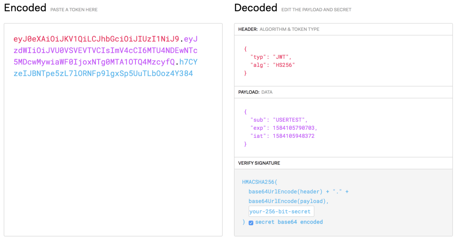 图1 由在线校验工具解码后的JWT令牌