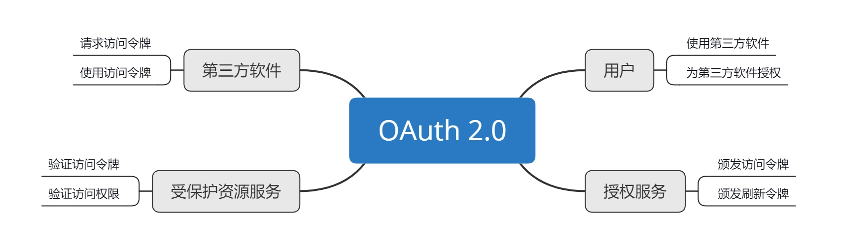 OAuth 2.0 是一个授权协议,它通过访问令牌来表示这种授权。第三软件拿到访问令牌之后,就可以使用访问令牌来代表用户去访问用户的数据了。所以,我们说授权的核心就是获取访问令牌和使用访问令牌。