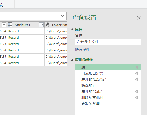 这个界面是Power Query 的主要工作界面,在你需要对多个文件进行自动化批量修改时,都需要通过这个界面来完成操作。同时,这个界面也会把你操作的中间结果显示出来。