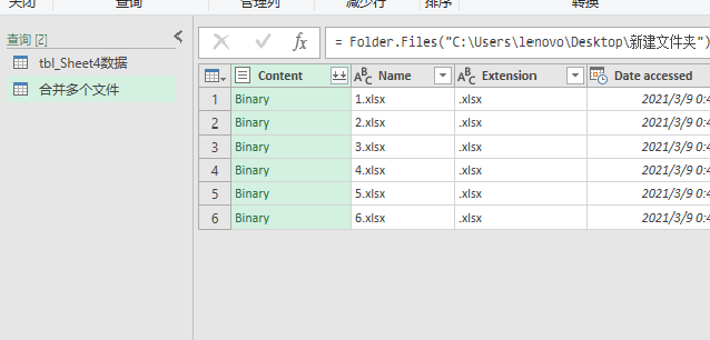 由于每个文件中可能会有不同的表,不能把它们直接合并。因此,我们需要点击“编辑”按钮,进入Power Query编辑界面。