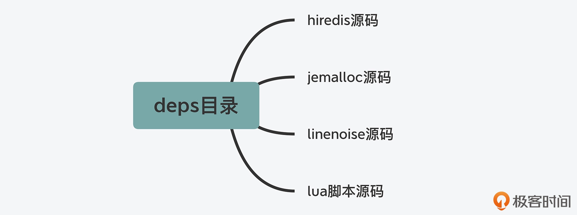 好了,总而言之,对于 deps 目录来说,你只需要记住它主要存放了三类代码:一是 Redis 依赖的、实现更加高效的功能库,如内存分配;二是独立于 Redis 开发演进的代码,如客户端;三是 lua 脚本代码。后续你在学习这些功能的设计实现时,就可以在 deps 目录找到它们。