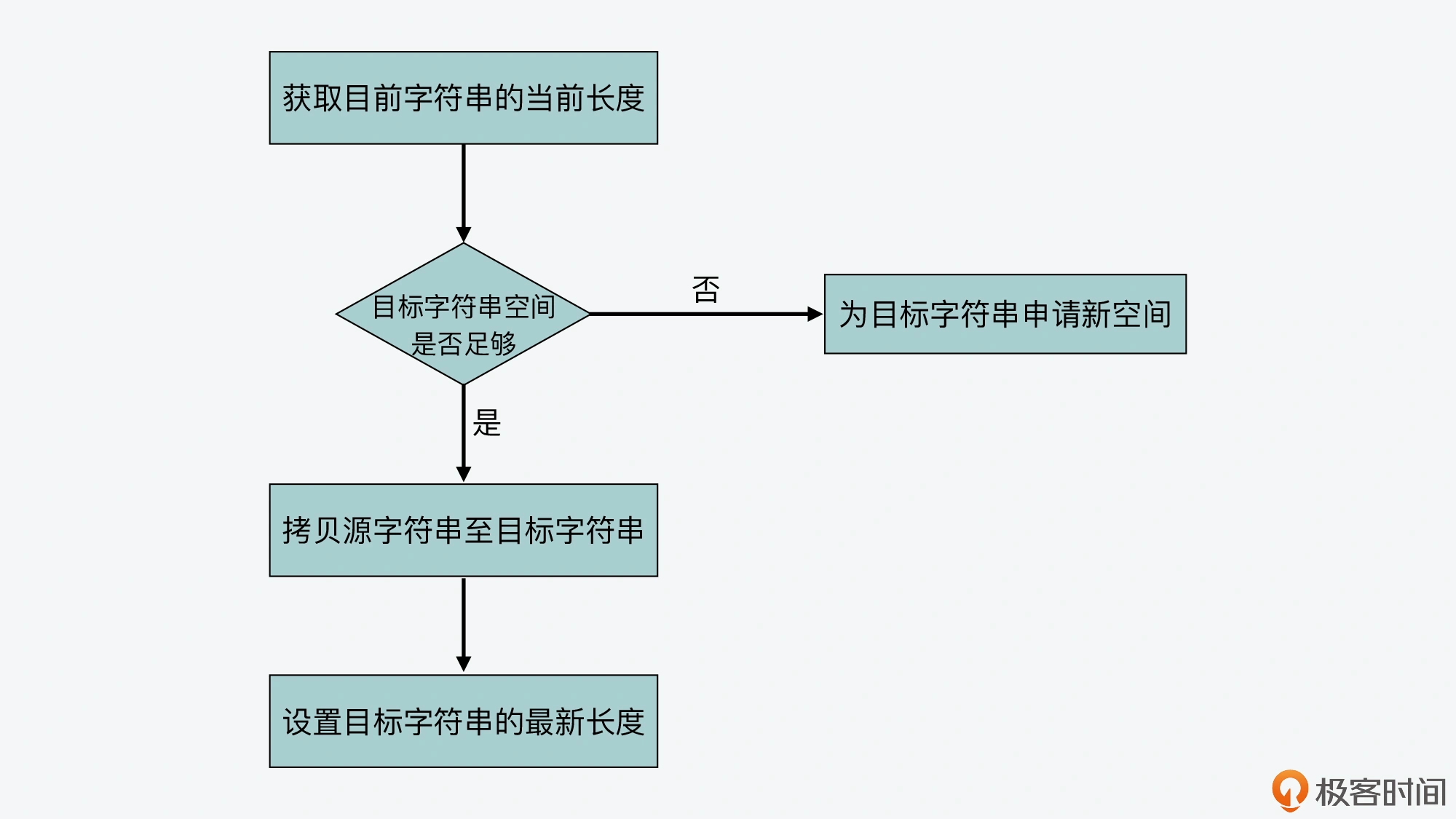 从代码中可以看到,strcat 函数和 strlen 函数类似,复杂度都很高,也都需要先通过遍历字符串才能得到目标字符串的末尾。然后对于 strcat 函数来说,还要再遍历源字符串才能完成追加。另外,它在把源字符串追加到目标字符串末尾时,还需要确认目标字符串具有足够的可用空间,否则就无法追加。