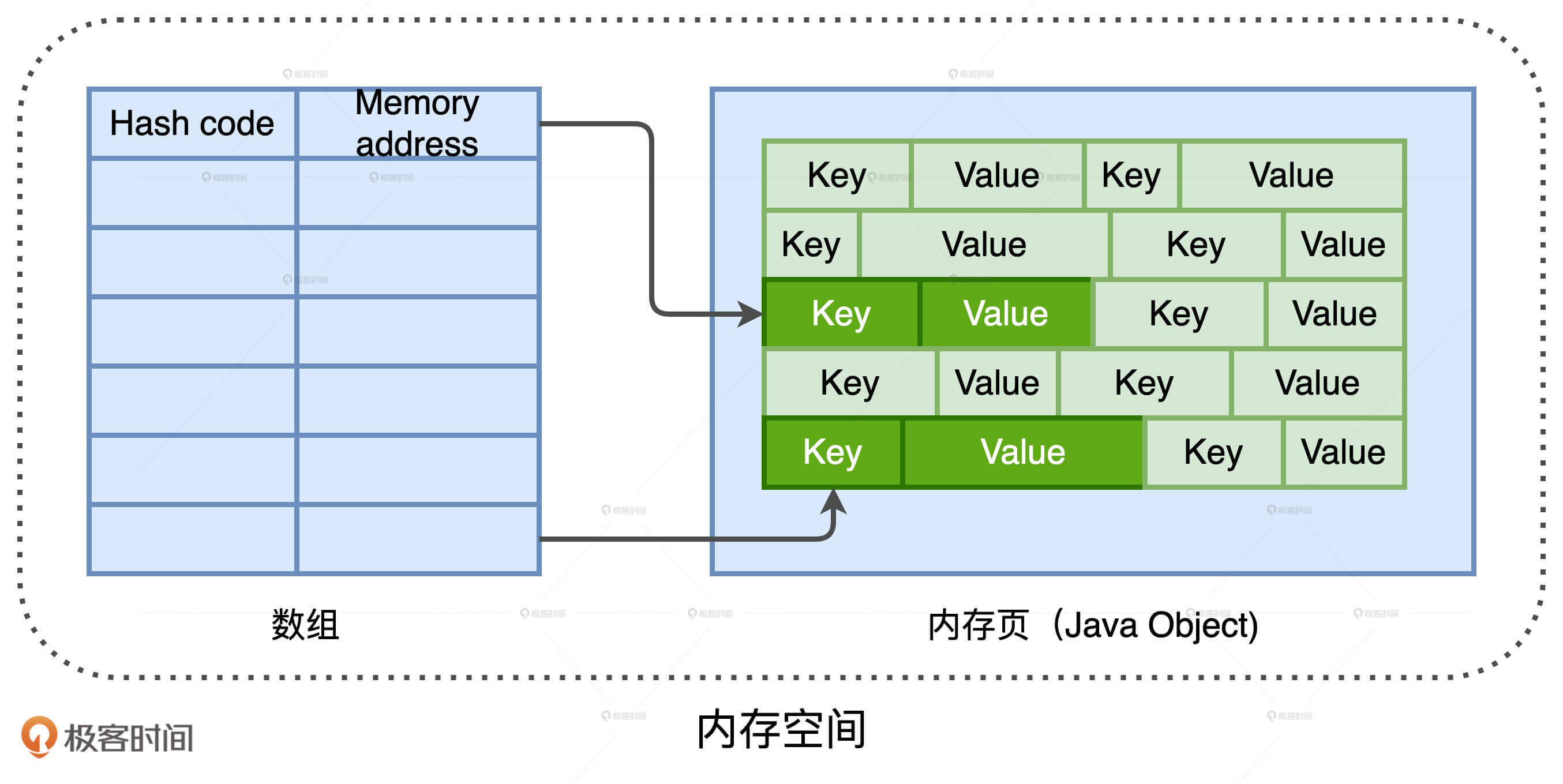 那么,Tungsten使用这种方式来管理内存有什么收益呢?我们不妨以常用的HashMap数据结构为例,来对比Java标准库(java.util.HashMap)和Tungsten模式下的HashMap。