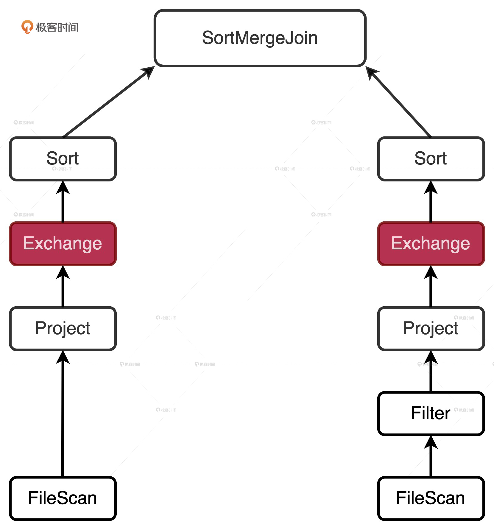 只要有任意一张表的统计信息满足这两个条件,Shuffle Sort Merge Join就会降级为Broadcast Hash Join。说到这儿,你可能会问:“既然DemoteBroadcastHashJoin逻辑规则可以把Sort Merge Join转换为Broadcast Join,那同样用来调整Join策略的OptimizeLocalShuffleReader规则又是干什么用的呢?看上去有些多余啊!”