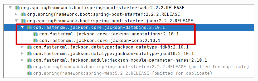 而这个依赖项会间接把 Jackson 添加进去,依赖关系参考下图: