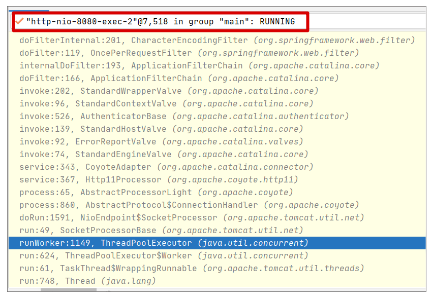 线程池对这个请求的处理的调用栈如下: