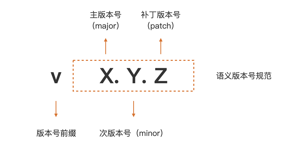 你可以看看下面这张图,语义版本号分成3部分:主版本号(major)、次版本号(minor)和补丁版本号(patch)。例如上面的logrus module的版本号是v1.8.1,这就表示它的主版本号为1,次版本号为8,补丁版本号为1。