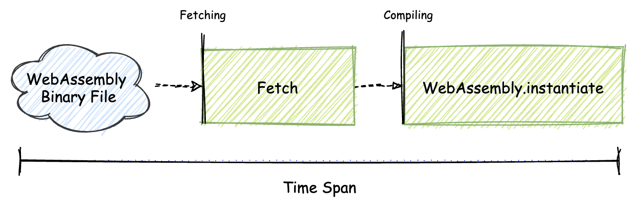 同 Wasm 模块的“流式实例化方法”一样,“流式编译方法”也可以在浏览器加载 Wasm 二进制模块文件的同时,提前开始对模块对象的编译过程。