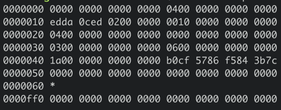 正如你下图中所看到的,第二行首先含有一个4字节的magic number(0xED0CDAED),通过它来识别当前文件是否boltdb,接下来是两个字节描述boltdb的版本号0x2, 然后是四个字节的page size大小,0x1000表示4096个字节,四个字节的flags为0。