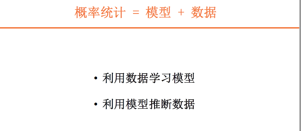 所以我们说,概率统计等于模型和数据的一个组合,这个组合是双向的。在学习阶段,我们利用数据来训练模型,在预测阶段,我们利用模型反过来去推断这个数据。