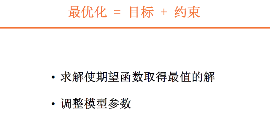 在这里面,我们最优化的目标是什么呢?是求解,让这个期望函数,或者让目标函数取到最值的解。手段是什么呢?就是通过调整模型的参数来实现。