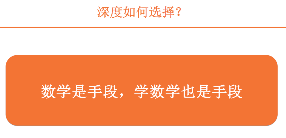 当然在这个判断当中呢,我们要给大家说一个问题,就是深度。如何来进行选择,如果来进行选择呢?我觉得应该有一条准则,这条准则是什么呢?就是数学是手段。