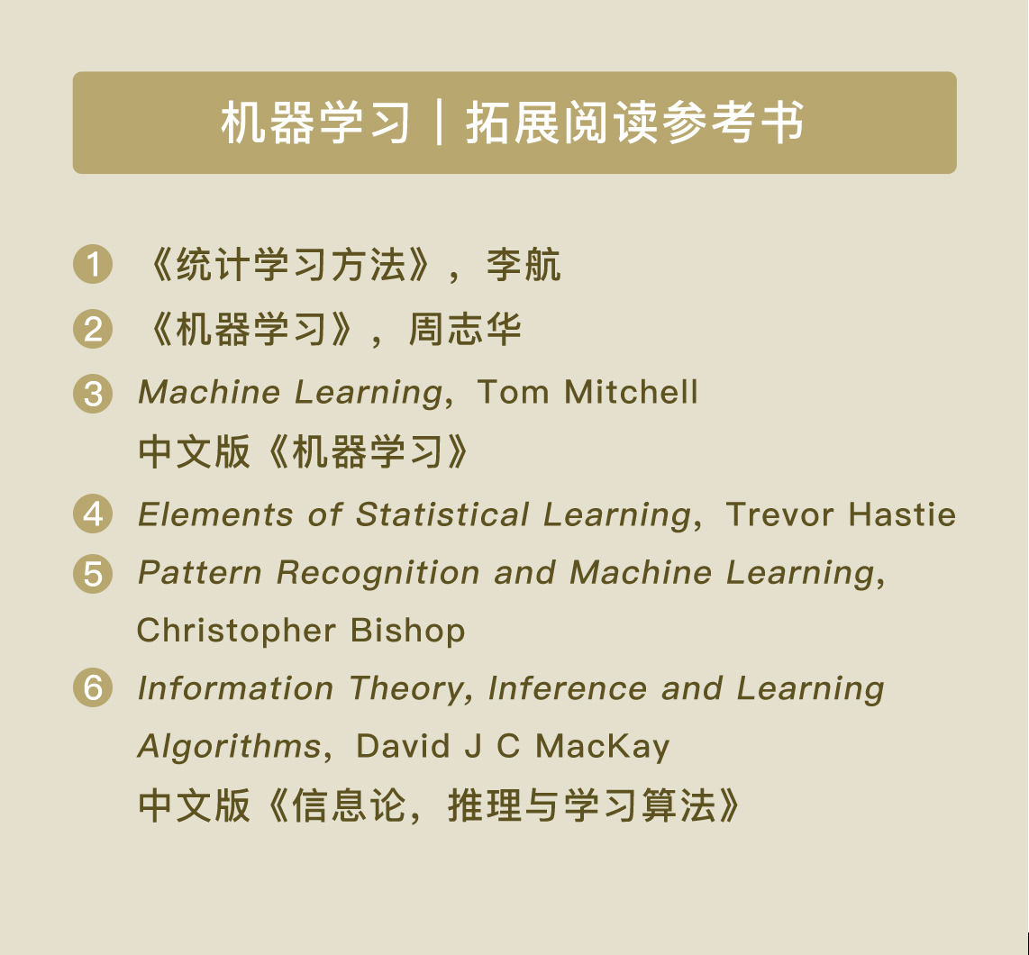 如果说《统计学习方法》胜在深度,那么《机器学习》就胜在广度。在具备广度的前提下,可以根据《机器学习》中提供的丰富参考文献继续深挖。