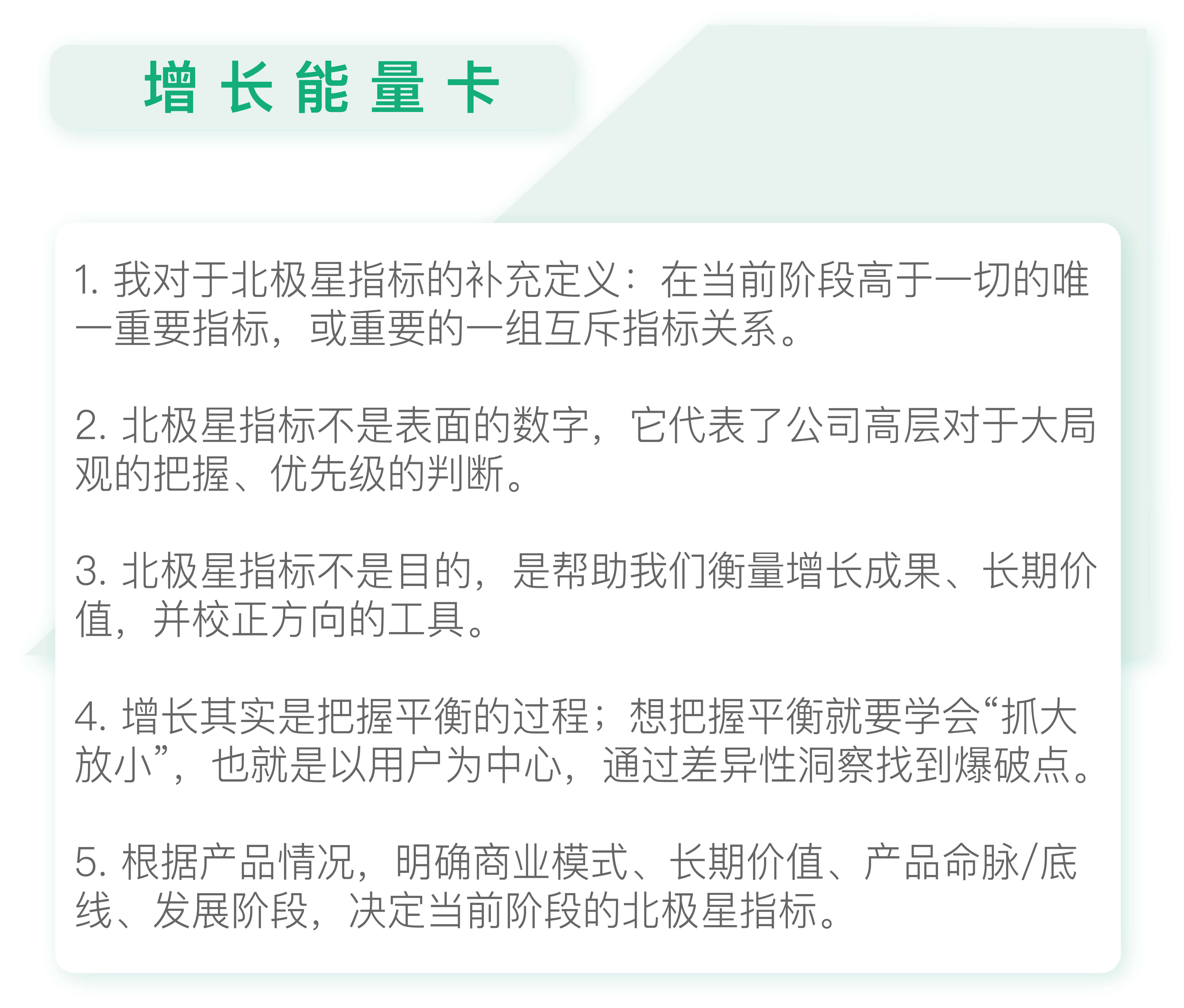所以说,北极星指标其实就是对增长成果的衡量,并且为增长带来了明确的方向。